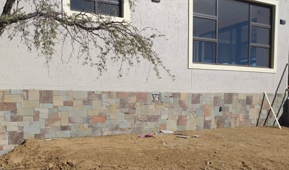It has different thicknesses and sizes with a rough edge. Cladding should be done to a rough wall with steel wire or mesh attached to the wall to strengthen the grip of the tile to the adhesive which is also mixed with bonding liquid e.g keycote bonding.
